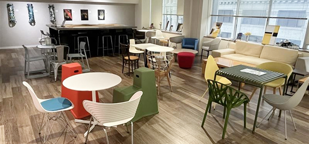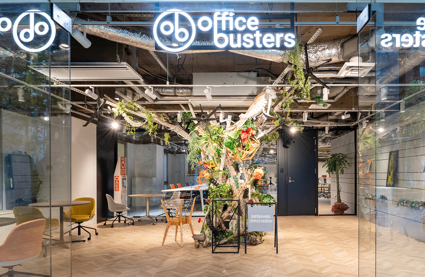ユーズドデザイナーズ家具や廃材アートを融合させることで、サステナブルなワークプレイスに彩りと個性をプラス。