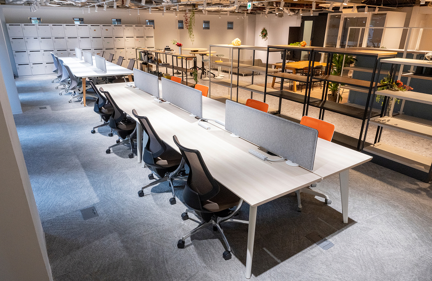 フリーデスクにパーソナルロッカーを備えすっきりと快適に。