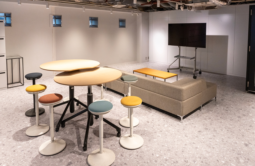 オフィス家具はリユース品と新品を組み合わせて使用することで什器コストを削減しました。