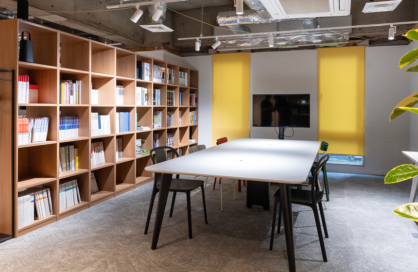 ポータブルバッテリーの活用で電源工事を削減。会議室の予約システム導入でユーザビリティも向上。
