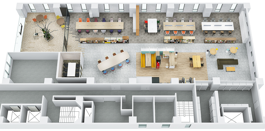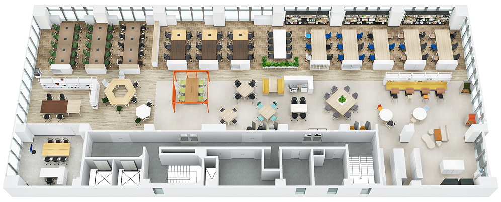 最新の働き方だけでなく企業のブランディングや社員のモチベーションを高める洗練された空間になります。
