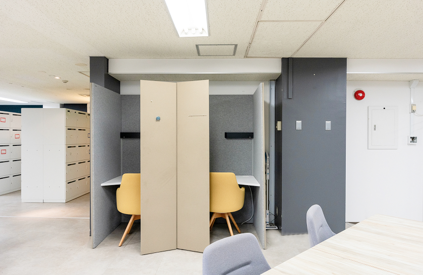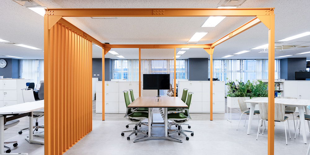 ワークブースや、やぐらを用いて、間仕切り工事を最小限に。工事コストも工期も削減しました。