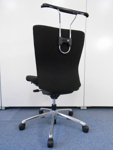 - 背もたれの裏側にハンガーがついているので上着などを形よく掛けられ、袖や裾が床に付きにくくなります。