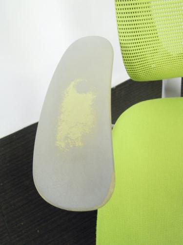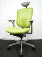 【1脚入荷!】岡村製作所 Contessa コンテッサ ライムグリーン シルバーフレーム ネオグレー 座面クッション アジャストアーム 小型ヘッドレスト付き CM52SG ※肘パットに傷がございます【中古肘付きメッシュチェア】【高級チェア】【おつとめ品】【OAチェア】サーキュラーバリューCO2削減量の算出について