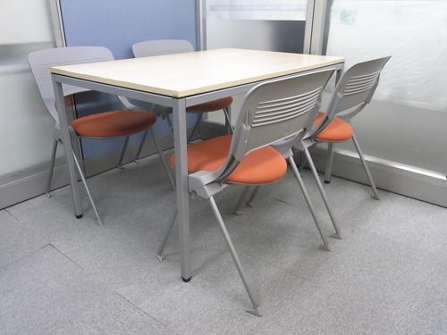 【5点セット 4名様会議セット】ミーティングテーブル 幅1200mm ウィスナーハーガー社製&ミーティングチェア スタック収納タイプ 内田洋行製【セット商品】- 在庫数