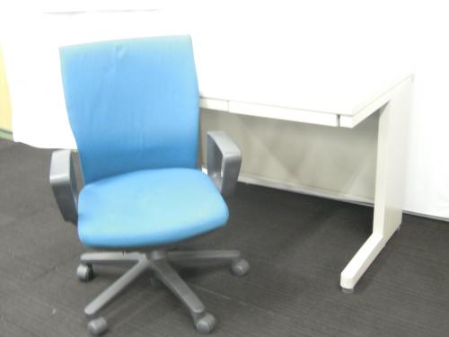 【セット商品!】コクヨ製 幅1100mm 平デスク + コクヨ製 肘付きトレンザチェア グリーン- 川崎店