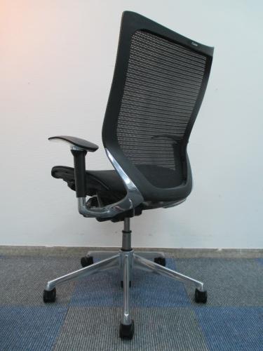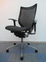 【硬めの座面が大人気!国産メッシュチェアの代表格!オフィスの執務室、会議室におすすめ!】■オカムラ(okamura)製 バロン(Baron)チェア 肘付き ハイバック 背面メッシュ ■固定肘 ■色:ブラック【IB】