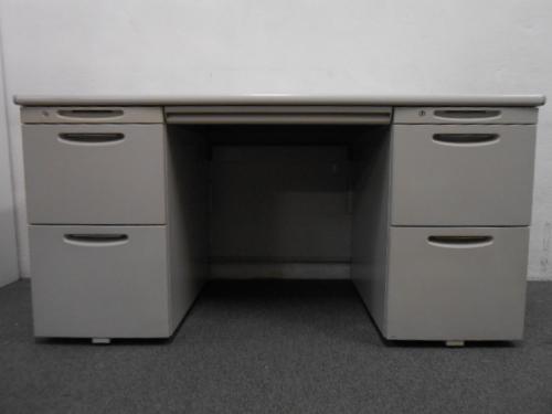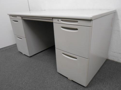 上長席・役員向けサイズ オカムラ SDデスクシステム 両袖机 定番のW1400サイズ 汚れの目立ちにくいニューグレー 鍵付き シリンダー錠
