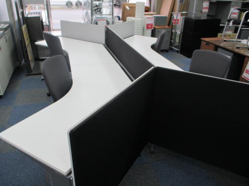 ■L型デスクと肘無しOAが4台セットになったお得なセットのご案内です。
