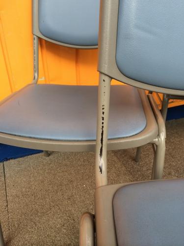 - かなり強い濃い黄ばみ・変色が商品全体にある。(例、座面・背もたれ、脚部等にある。)