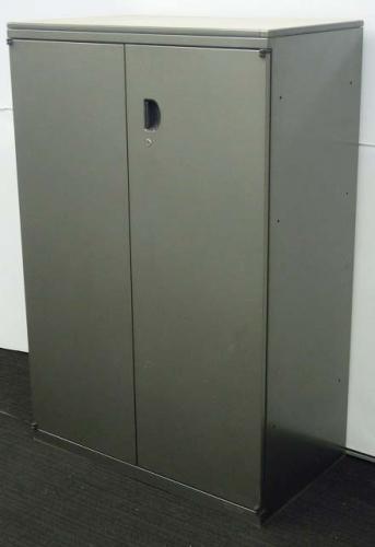 【おつとめ品】オカムラ製作所 SAシリーズ 両開き書庫 ダークグレー ナチュラルカラーの天板付き F531Y Z424- 川崎店