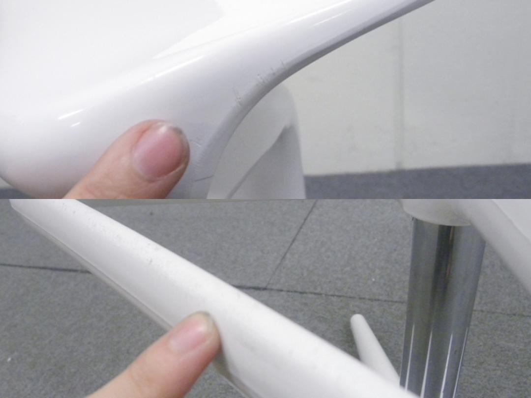 - 目立つ箇所あり傷・破れ・ほつれ・へたり・しわが多数または深い傷・破れ・ほつれ・へたり・しわが一部ある。※座面・背もたれ、シェル、脚部等にある。