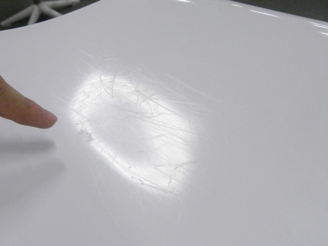 - かなり強い濃い黄ばみ・変色が商品全体にある。(例、座面・背もたれ、脚部等にある。)