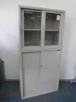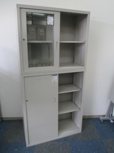 【中古希少】【書庫セット】 KOKUYO(コクヨ)製 ガラス引き戸+スチール引き戸 【中古事務キャビネット】- 千葉店
