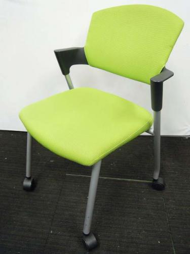 【4脚入荷!】コクヨ製 Protty プロッティー スタッキングチェア キャスタータイプ 総張り CK-587 ライムグリーン 背もたれに若干ホツレがございます【中古オフィスチェア】【おつとめ品】【会議チェア】- 川崎店