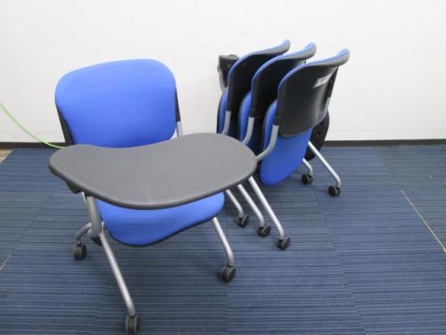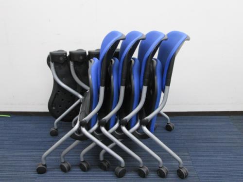 【会議用事務椅子】ネスティングチェア【4脚セット】【背もたれリクライニング可能】【メモ台付き】【平行収納可能】【状態良好】【セット商品】【会議チェア】- 日本橋店