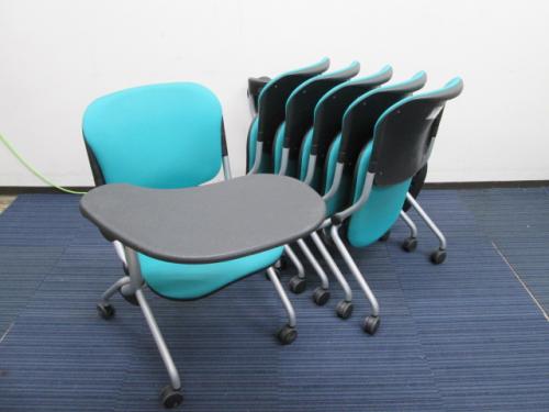 【状態良好品】【会議用事務椅子】ネスティングチェア【6脚セット】<br>【背もたれリクライニング可能】【メモ台付き】【平行収納可能】【状態良好】【セット商品】】【会議チェア】- 日本橋店