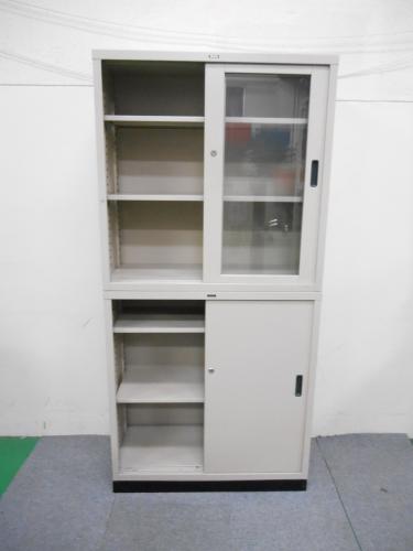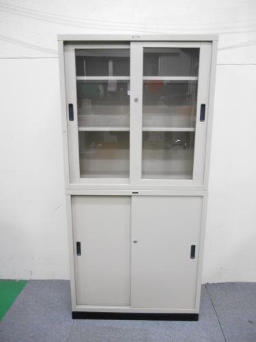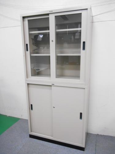 【その他メーカー製】書庫セット|ガラス引き違い+引き違い【オフィス家具 書庫 キャビネット 収納 東京 豊島区】- 池袋店