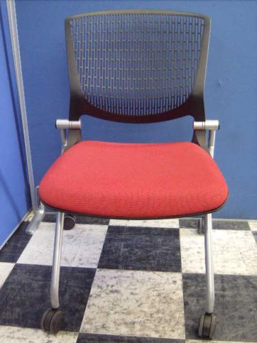 おつとめ品【状態良好】肘なしネスティングチェア■オカムラ グラータ■情熱的なレッド■会議・催事用に【オフィス家具 チェア イス 埼玉】【会議チェア】- 埼玉本店