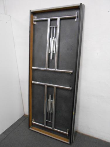 - 一部不具合あり天板歪み、アジャスター無し、キャスター使用不可ようなそのテーブルの本来の効用を果たすための機能以外の一部が使用不可な状態。(例、キャスターロッ ク機能使用不可、棚板無し等がある。)