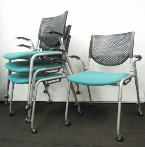 【セット商品】オカムラ okamura | プロスタッフシリーズ Prostack | スタッキングチェア肘付き4脚セット | グリーン | 1セット |【会議チェア】- 川崎店