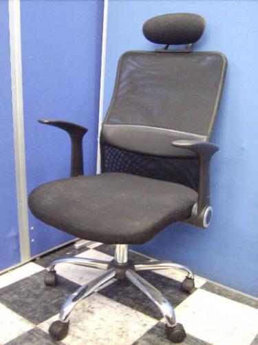 【おつとめ品】ヘッドレスト付ハイバック肘付きチェア■ブラック■布地部分に破れがあるため特価【オフィス家具 チェア イス 埼玉】【OAチェア】- 埼玉本店