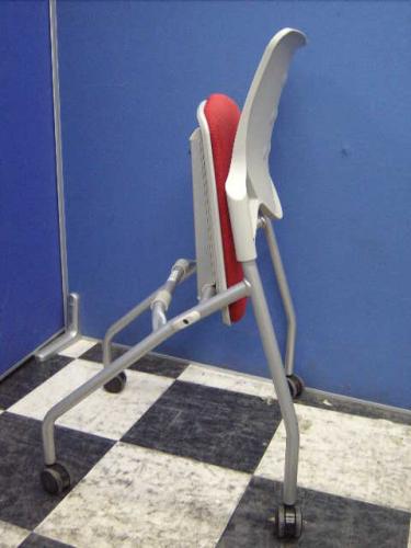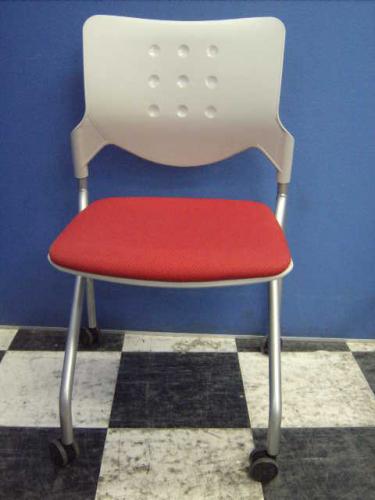 【状態良好】【国内メーカー】オカムラ製 ネスティングチェア レッド×ニューグレー色 【オフィス家具 チェア イス 埼玉】【会議チェア】- 埼玉本店