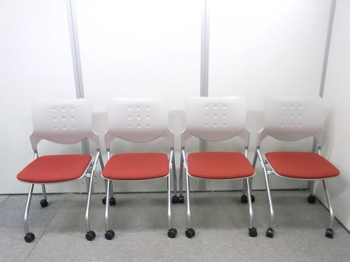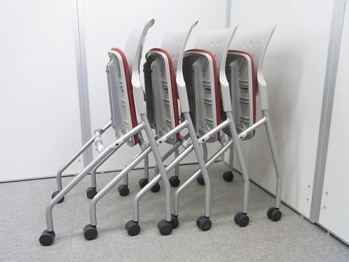 【4脚セット】【状態良好】ミーティングチェア キャスター付 ネスティング収納タイプ 〜会議や研修にごオススメです!〜【セット商品】【会議チェア】- 在庫数