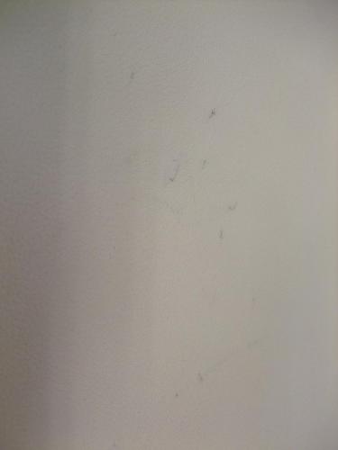 - かなり強い濃い黄ばみ・変色が商品全体にある。(例、座面・背もたれ、脚部等にある。)