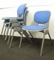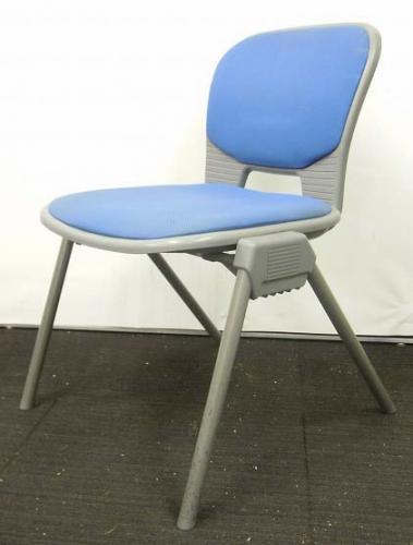 【セット商品】【4脚セット】LION製 スタッキングチェア ブルー 重ねて収納できるミーティングチェア 【中古肘無しオフィスチェア】【会議チェア】- 川崎店