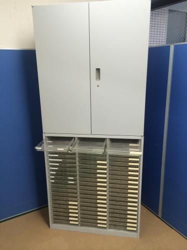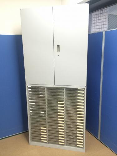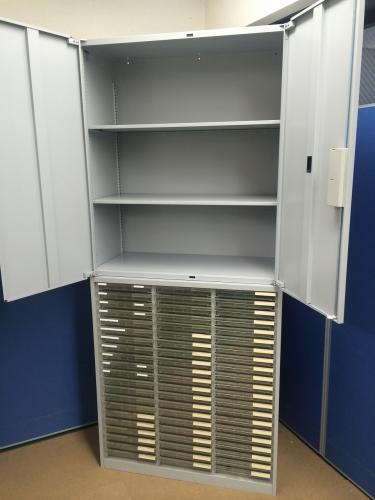 【おつとめ品】【書類棚】書庫セット(上/両開き・下/クリスタルトレー)□イトーキ(ITOKI)□シンラインライン 【中古 事務用品】※トレイに若干ヒビ及び欠けあり(使用上は問題なし)- 品川・三田店