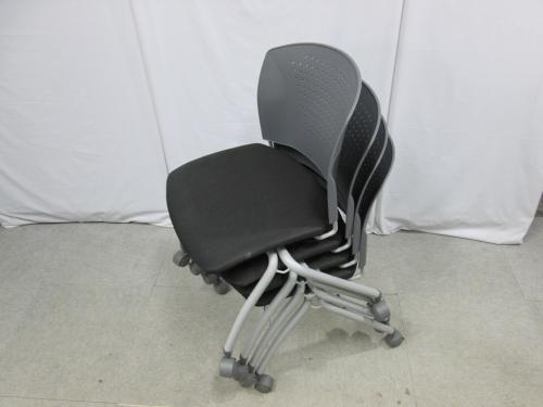 AICO|スタッキングチェア4脚セット|キャスター付|ブラック|状態良好◎|8脚入荷【セット】【会議チェア】- 横浜本店