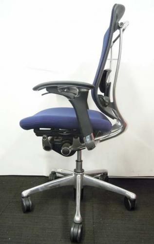 【オカムラ製の最高級チェアが残り1脚限りです!!】オフィスバスターズ 東大阪店 オカムラ製 コンテッサ シリーズ ダークブルー アジャストアーム※可動肘 背/座面メッシュ ランバー 世界で認められた革新的タスクチェア!人間工学に基づいた快適な座り心地を実現! 肘付きハイバックチェア!! 中古 外部倉庫品