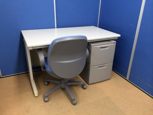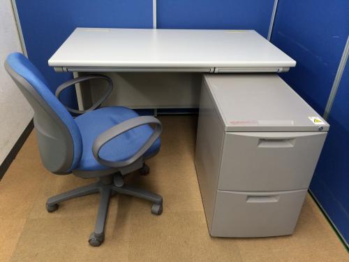 【セット商品】【ライオン製平机】と【イトーキ製2段ワゴン】と【コクヨ製メディクスチェア肘付】の片袖チェアセット!!状態良好- 品川・三田店