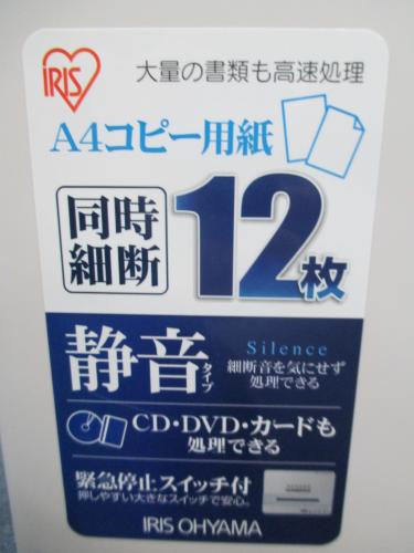 ・定格細断枚数:A4コピー用紙/12枚、CD・DVD/1枚