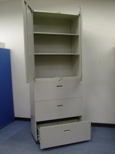 - 多数不具合あり引出の開閉不可、施錠不可、棚板無しといったその書庫の本来の効用を果たすための機能以外の多数が使用不可(例、扉、引出の開閉がしづらいなどがある。 )