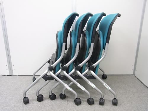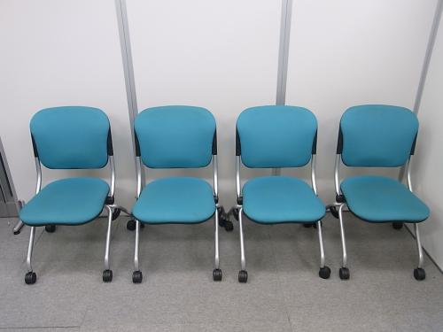 【4脚セット】ミーティングチェア ネスティングタイプ キャスター付き 岡村製作所 トーションラインシリーズ【状態良好】【会議チェア】- 在庫数