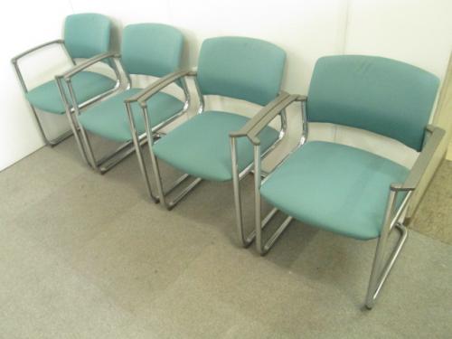 【4脚セット】コクヨ ミーティングチェア 肘付 グリーン【会議チェア】- 名古屋本店
