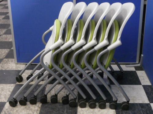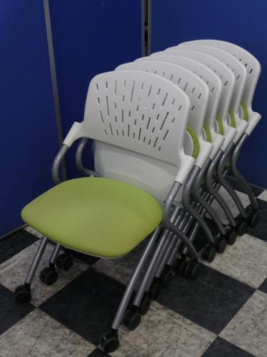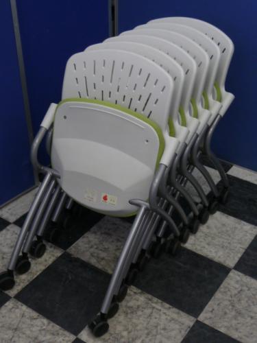 【セット商品】ネスティングチェア6脚■アップルグリーン■セットで1脚当たり500円引き■ライオン製サテラ■会議・催事用に【オフィス家具 チェア イス 埼玉】【会議チェア】- 埼玉本店