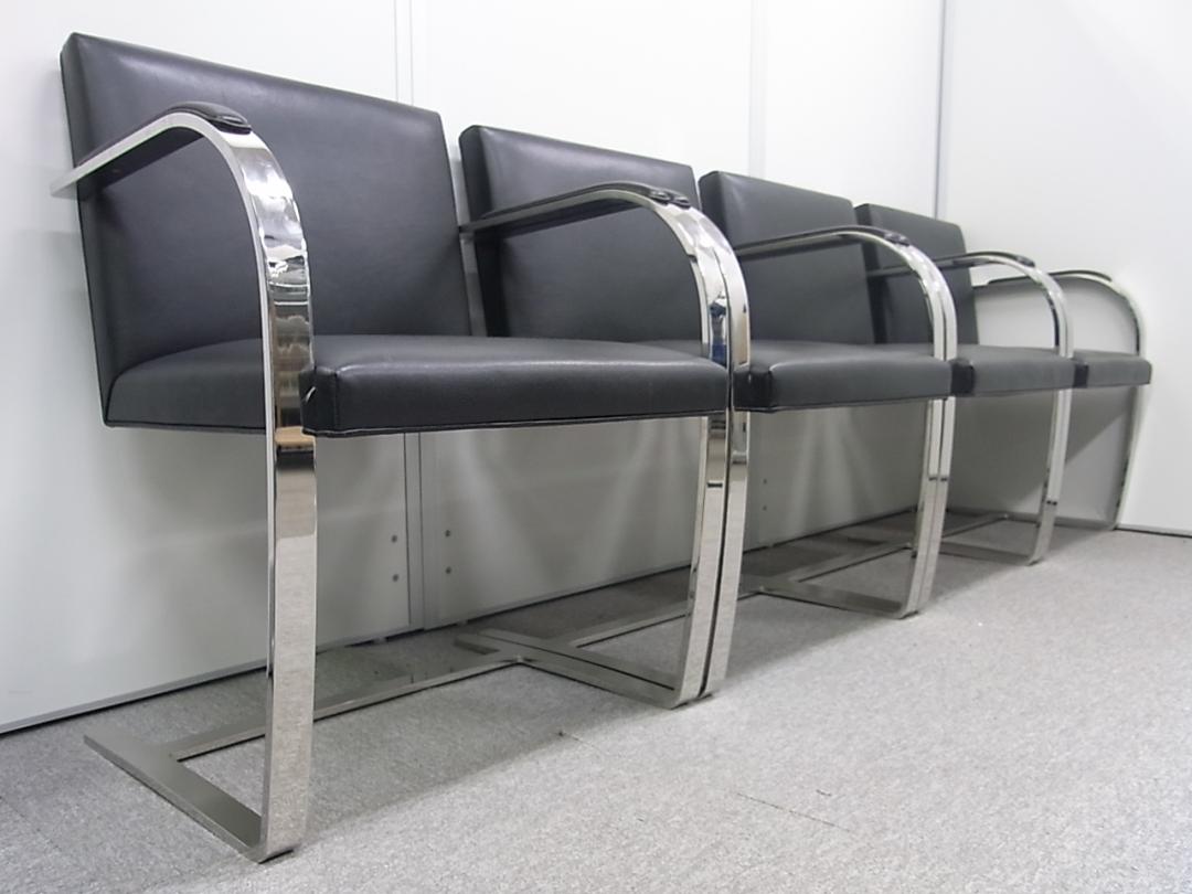 【本革】ミーティングチェア ダイニングチェア Brno Chair Flat Bar (ブルーノフラットバーアームチェア) 〜カンティレバー構造設計で20世紀を代表するチェアのひとつ〜【錦糸町店厳選商品】【会議チェア】- 在庫数