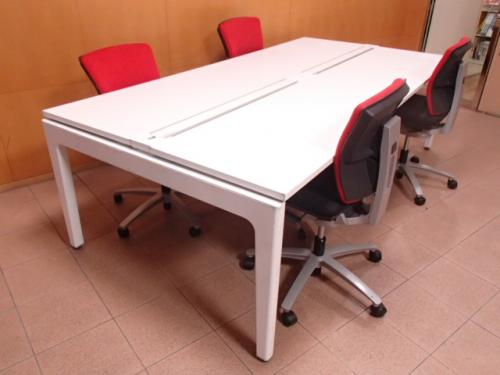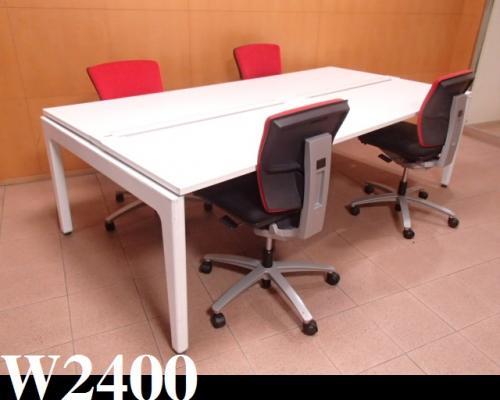 中古|フリーアドレスデスク + イナバ製 インフィニア 4脚セット|ホワイト|W2400 【セット商品】【ぞくぞく】- 大阪・堺店
