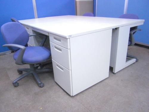 【4名起業セット】片袖机W1000(コクヨ製・BS)+オフィスチェア(内田洋行製・ジャストチェア)計4セット|京都・滋賀・事務用品【セット商品】- 京都東寺店