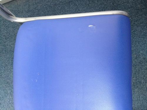 - あり黄ばみ・変色が広い範囲にうっすらある、または濃い黄ばみ・変色が一部ある。(例、座面・背もたれ、脚部等にある。)
