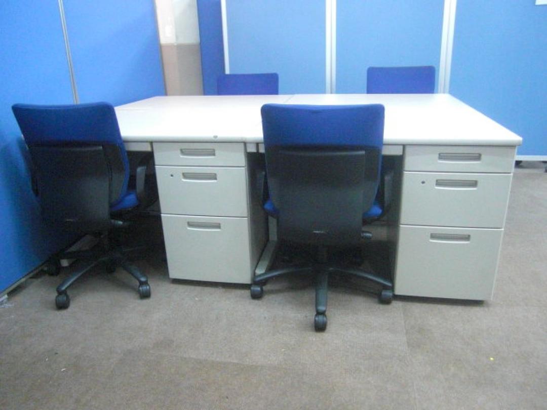 【4名起業セット】片袖机W1000(コクヨ製・BS)+オフィスチェア(イトーキ製・アドフィットチェア)計4セット|京都・滋賀・事務用品【セット商品】- 京都東寺店