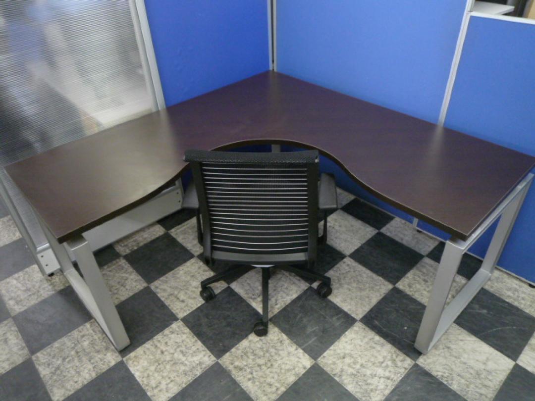 【大量入荷】【状態良好】【L字デスク&高級チェアセット】■1600×1600mm■エグゼクティブなダークブラウン木目+スチールケース製シンクチェア【オフィス家具 デスク 机 埼玉】- 埼玉本店