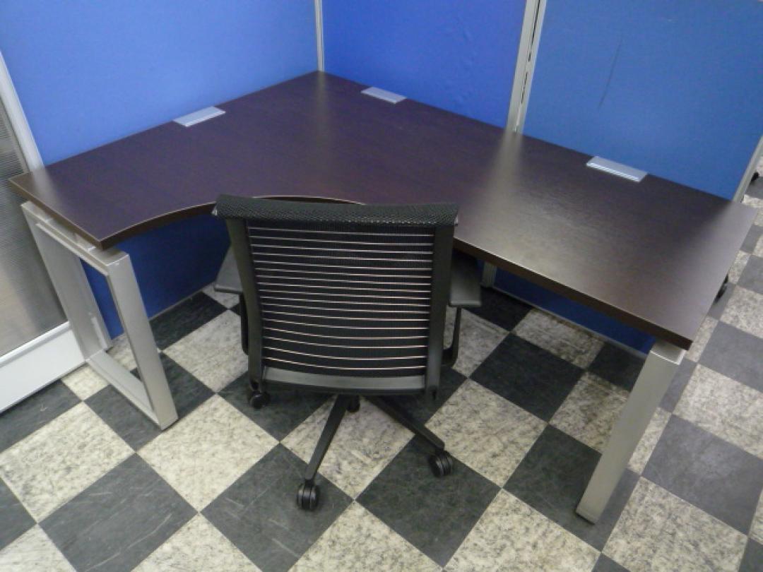 【状態良好】【L字デスク&高級チェアセット】■1600×1200mm 左凸■エグゼクティブなダークブラウン木目+シンクチェア- 埼玉本店