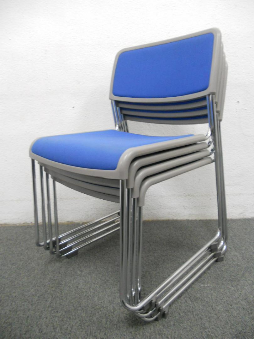■スタッキングチェア ■ブルー(布張り) ■クロームメッキ脚- 在庫数