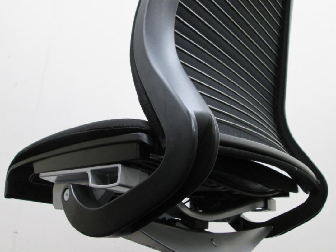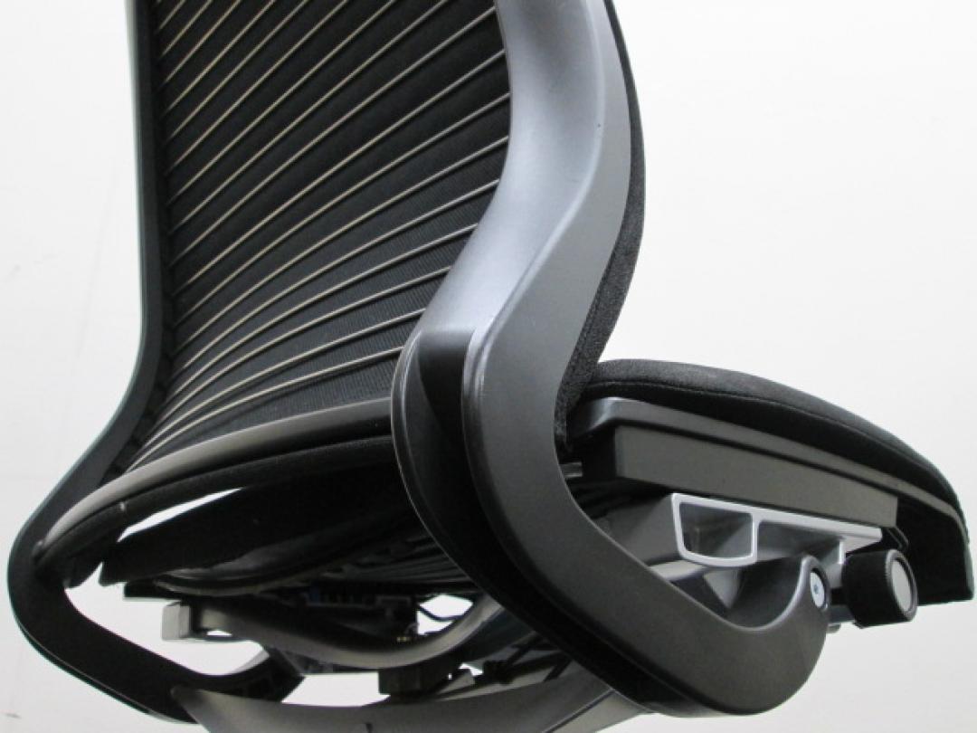 快適な座り心地に不可欠な調節機能である、上下昇降、座面の奥行き調整、リクライニングなどを備えており、操作もわかりやすく好評です。 特に、座面の奥行きは、座面下の左右に通った細いバーで調整でき、座ったままで軽やかに滑るように調整が可能です。 価格面では、新品では高めですが、中古は流通も多く、定価の3割前後の価格で高級チェアの座り心地を手に入れることができます!