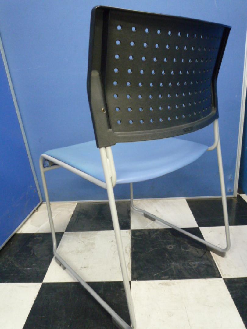【大量入荷】スタッキングチェア■座面ブルー×ブラックシェル■ナイロンシートで丈夫■会議・催事用に【オフィス家具 チェア イス 埼玉】- 埼玉本店