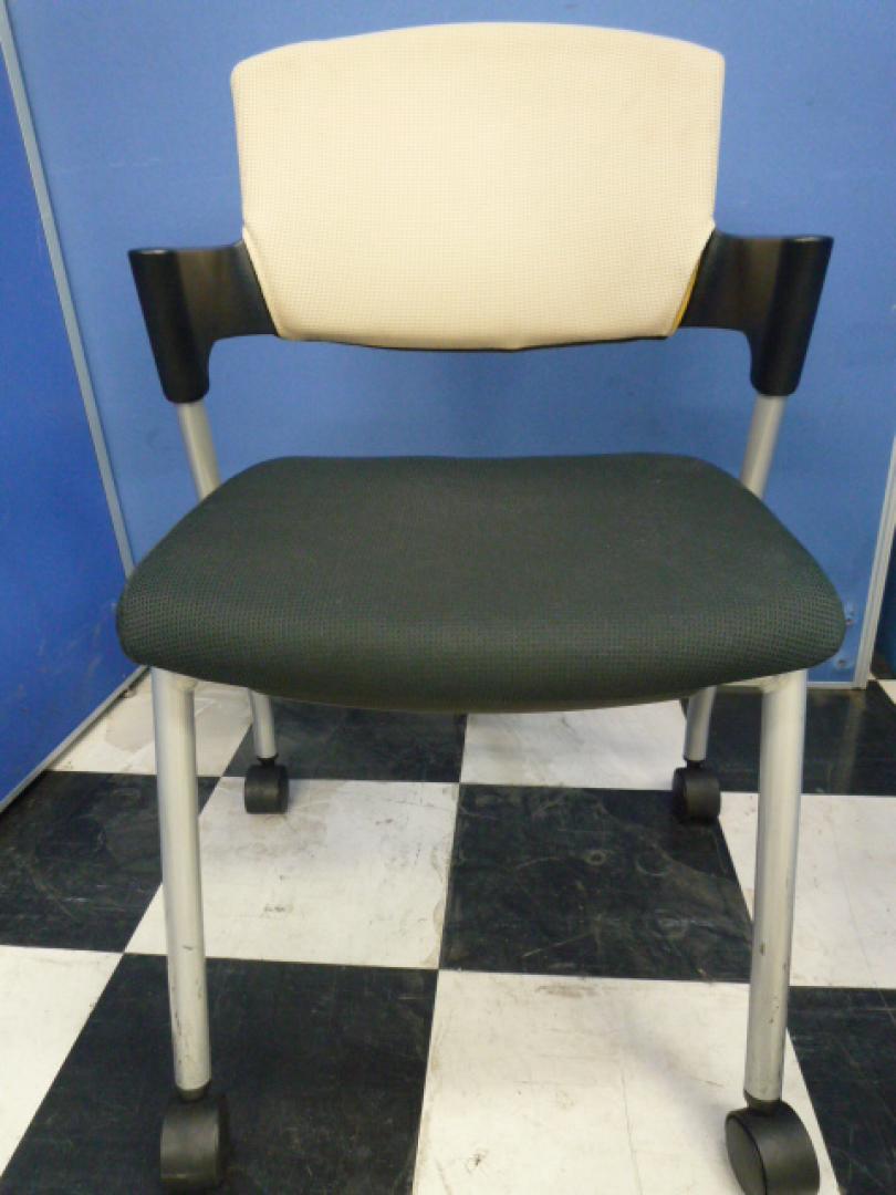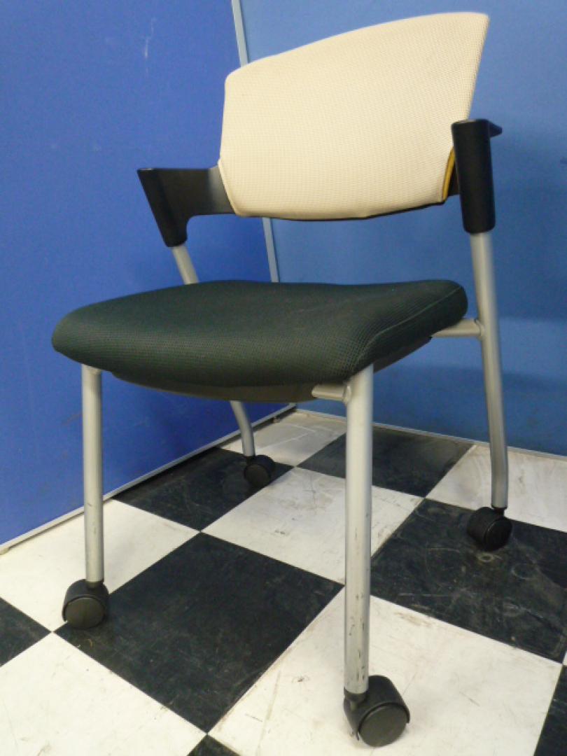 ■専門クリーニング業者洗浄済■状態良好■ 【大量入荷】スタッキングチェア■キャスター付き■背ライトカーキ×座面ブラック■会議・催事用に【オフィス家具 チェア イス 埼玉】- 埼玉本店
